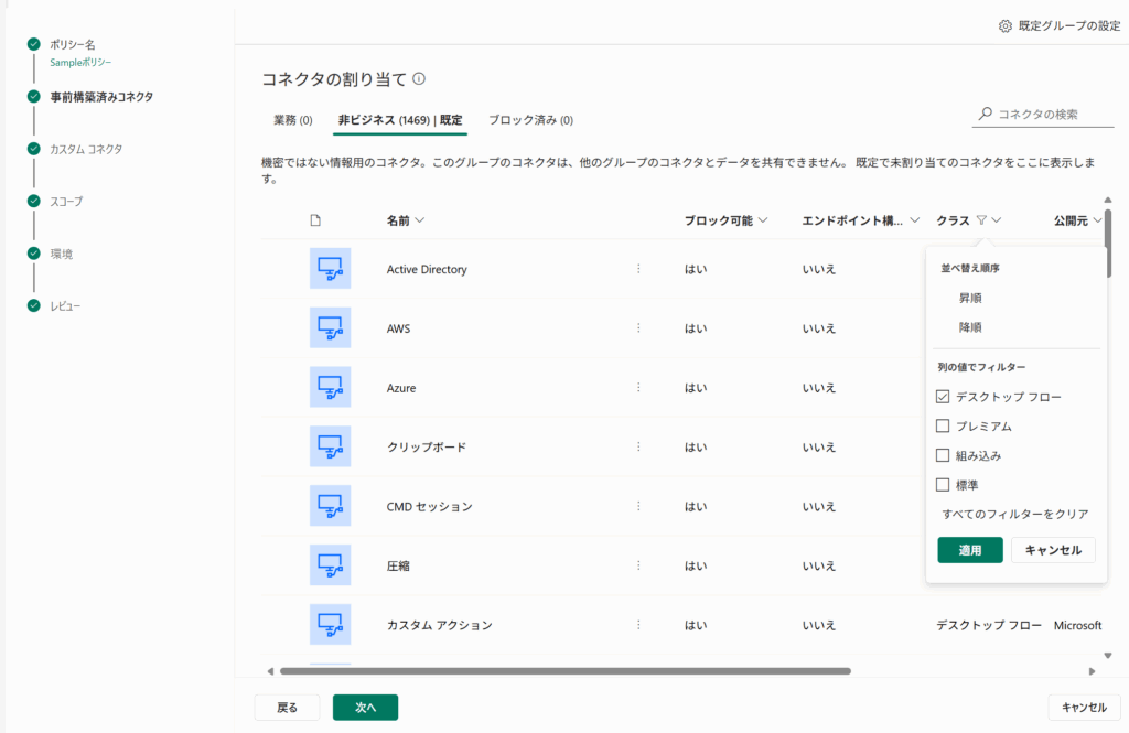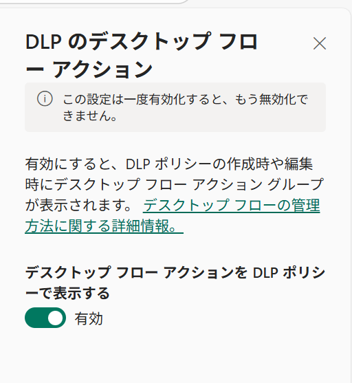 設定を有効にした後で、実際にDLPポリシーのクラス設定画面を確認してみましょう。すると、これまでなかった「デスクトップフロー」という項目が新たに追加されていることが確認できます。