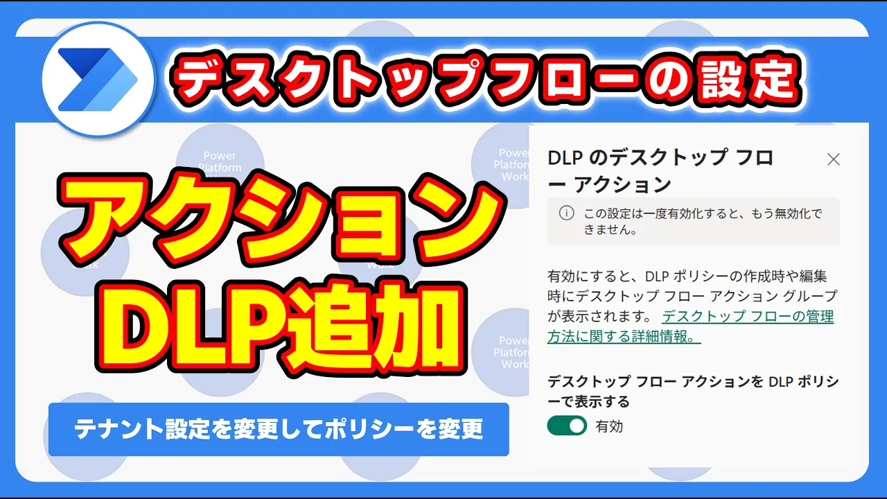 そんな時に便利なのが、今回ご紹介するテナント設定の変更方法です。ちょっとした設定を有効にするだけで、デスクトップフローのアクションも他のコネクターと同様にDLPポリシーで管理できるようになります。