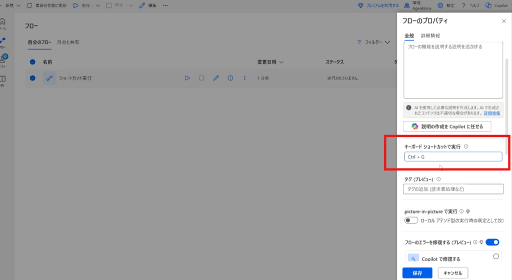 同じショートカットキーの組み合わせは、1つのフローにしか設定できないので、重複しないように管理することが大切でしょう。