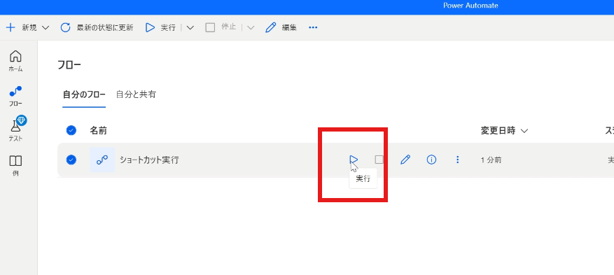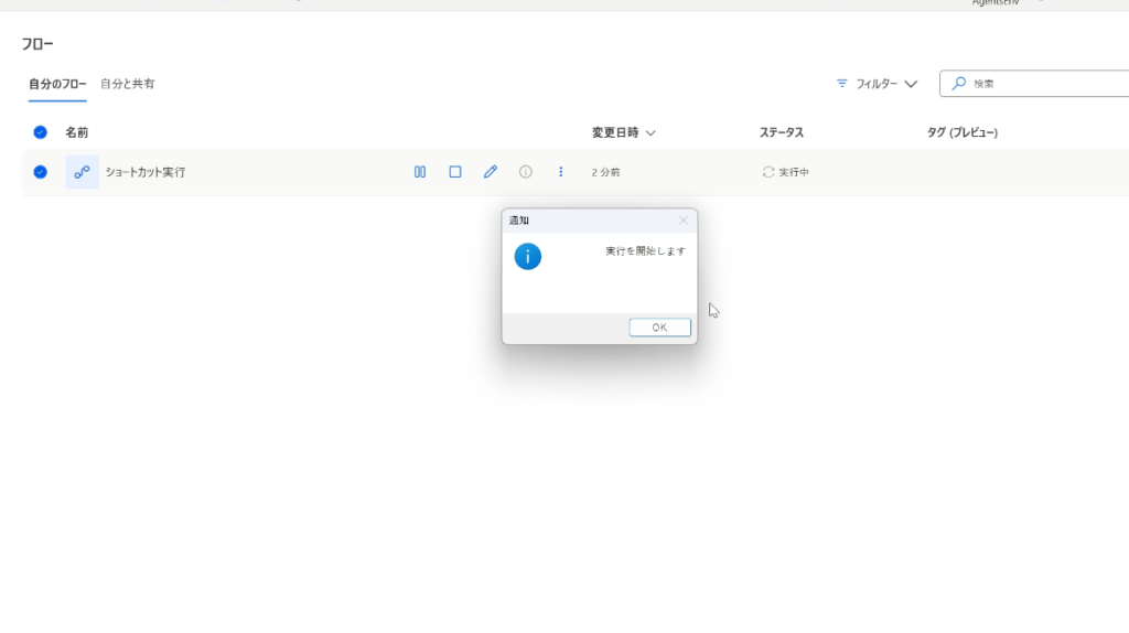 実際にショートカットキーでフローを実行してみる