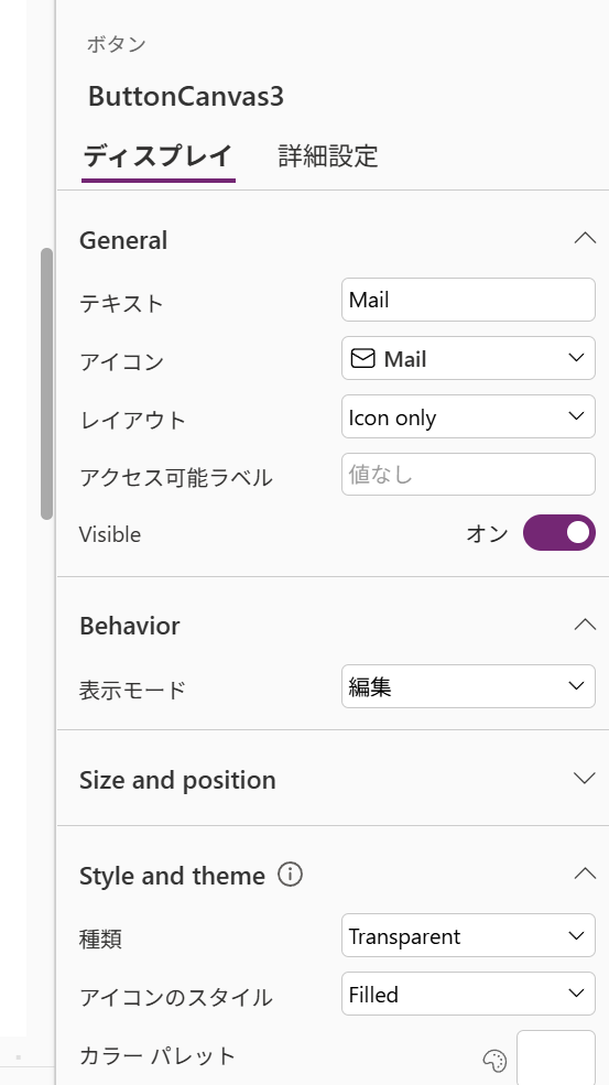 既定のコントロールで塗りつぶしアイコンを作成する場合は、モダンコントロールのボタンコントロールの設定を変更していきます。