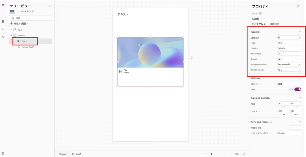 一方、カードコントロールは見た目のとおり、よくあるようなカードデザインを追加できるコントロールです。画像やテキストなどを修正して、ある程度自由なカードを作成できるようになっています。