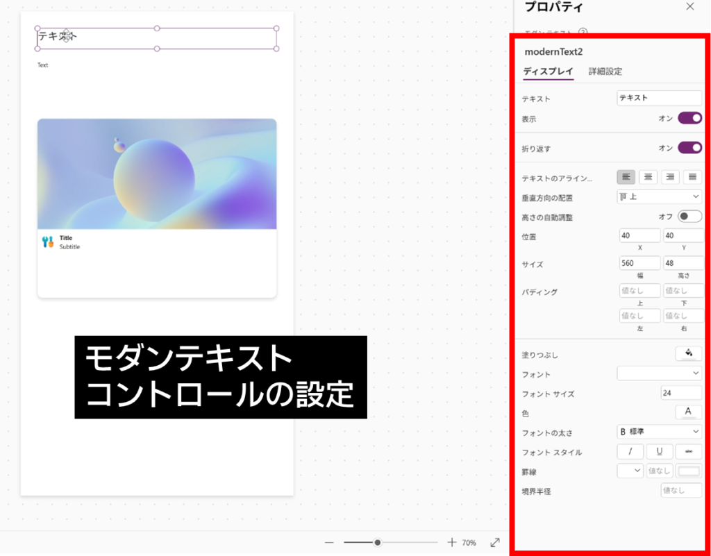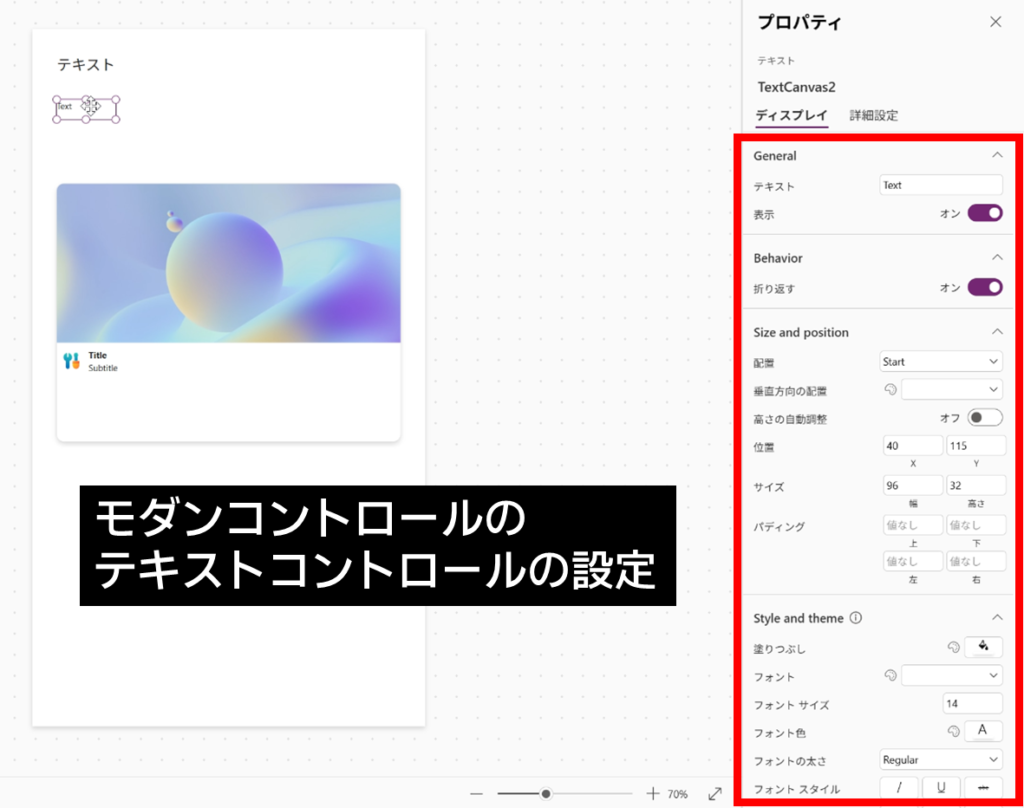 実際に二つの設定画面を見比べてみると、それぞれの設定項目が異なっていることが確認できます。名前が似ているので混同しやすいですが、まったくの別物として扱う必要がありますね。コントロールのプロパティを見ると、Dataverse for Teams のテキストコントロールが近そうですね。