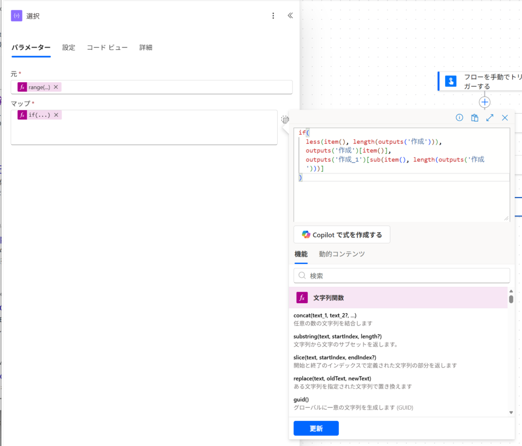 outputs('作成_1')[sub(item(), length(outputs('作成')))]
