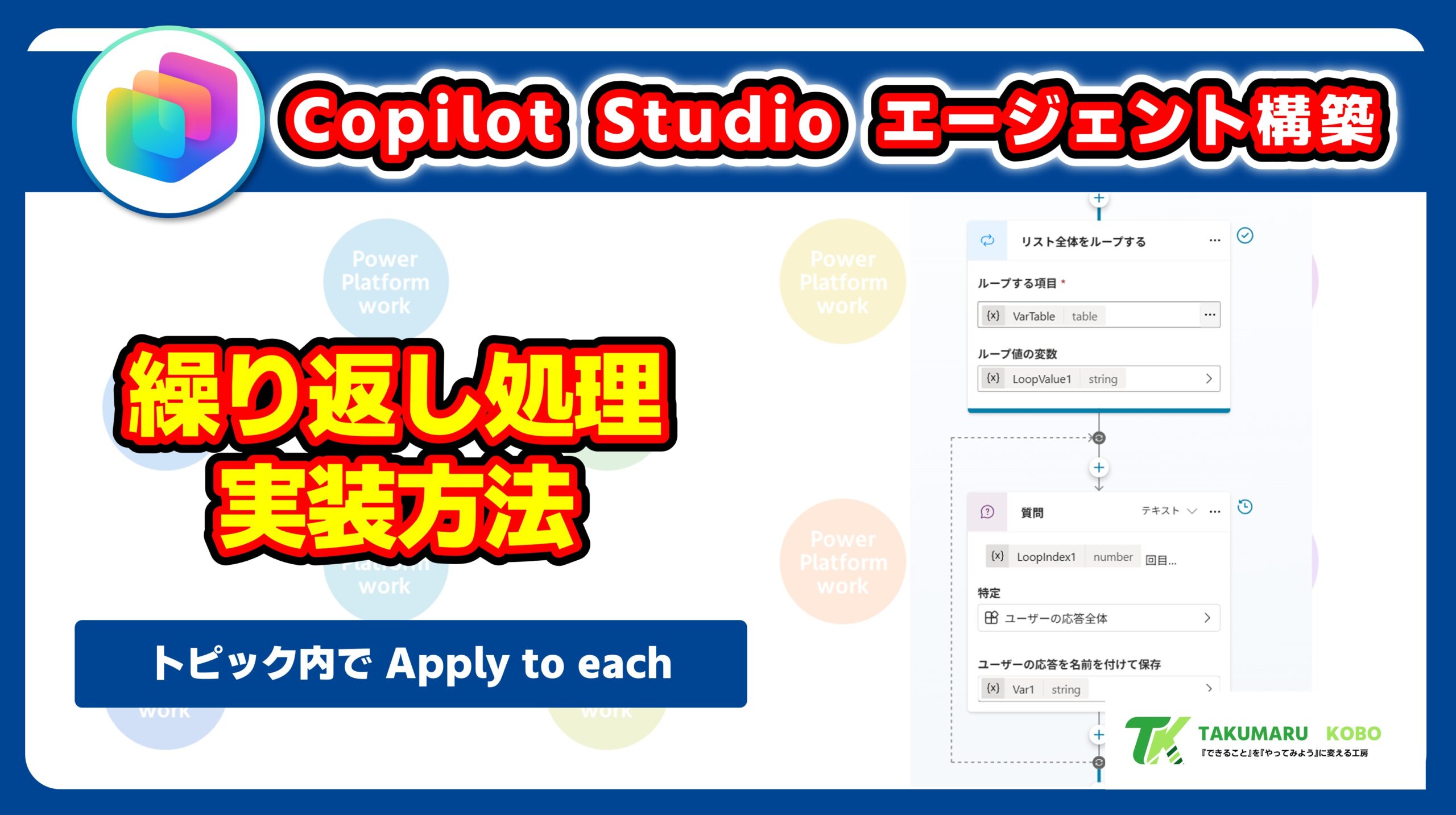 Copilot Studioでテーブルデータに対して繰り返し処理を行いたい、と思ったことはありませんか?Power AutomateではApply to Eachがおなじみですが、実はCopilot Studioのトピック内でも同様のループ処理を実現することが可能です。
